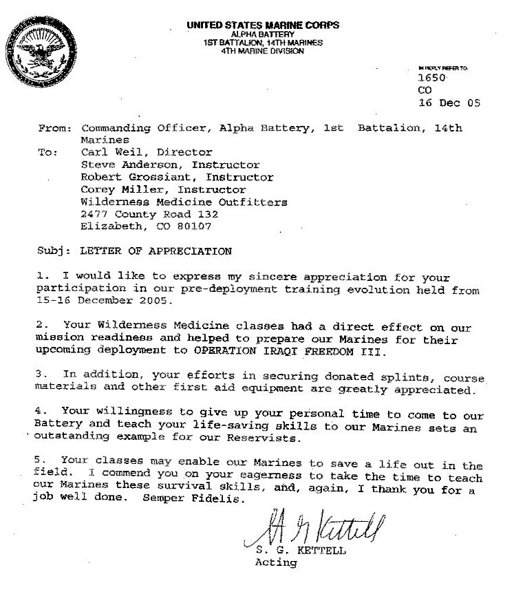 Several members of my family have taken any number of classes/workshops from Wilderness Medicine. Just over a year ago, I took an additional course and was again reminded that there is always more to learn. My family and I all agree that it does take some work on our parts and is not just a cakewalk. The guidance and patience that Carl and his staff have with the class members is terrific! The end result and feelings of proficiency in a difficult field are well worth the efforts put forth. I have used their small book on many occasions as an invaluable reference and also use one of their first aid kits. It has a great assortment at a great price. At the time of my last workshop, they were preparing heavy trauma kits to donate to GIs on foreign active-duty. Your heart is in the right place and your reasonably priced classes are an excellent value. I will continue to take your classes and refer people to your program.